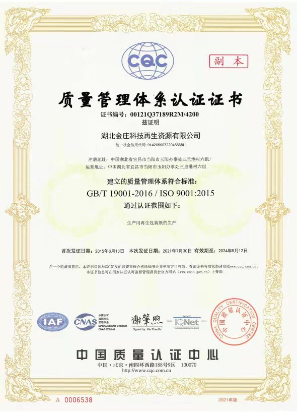 湖北金莊科技再生資源有限公司是以生產再生包裝紙和為工業園區集中供熱的資源綜合利用加工服務型企業。公司位于當陽市金橋工業園,成立于2000年,注冊資本15486.72萬元,占地面積近400畝,現有員工500余人。 自成立以來,公司始終堅持“誠信、創新、共贏”的經營理念,努力踐行“資源再生綜合利用,堅持綠色能源可持續發展,以為社會提供綠色可持續穩定適用的產品為己任”的經營方針。